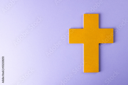 © vectorfusionart, Fototapeta premium Composition of christian ash wednesday cross on purple background with copy space
