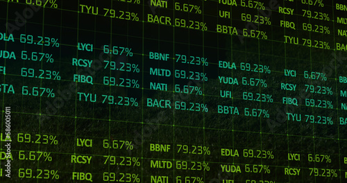 © vectorfusionart, Obraz premium Composition of financial data processing over grid
