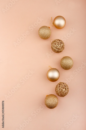 © Olga, Fototapeta premium composition of gold and red Christmas toys, paper background