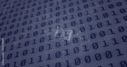 Obraz premium Composition of hourglass and binary coding over white background