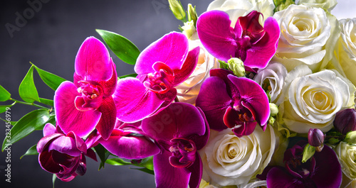 Fototapeta premium Composition with bouquet of freshly cut flowers