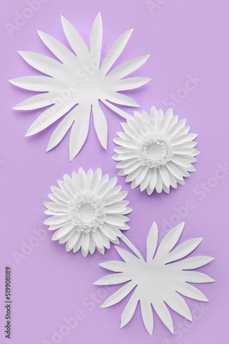© Pixel-Shot, Fototapeta premium Composition with different origami flowers on color background
