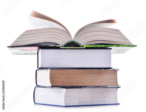 © monticellllo, Fototapeta premium Composition with stack of books isolated on white