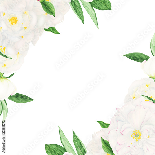 Naklejka premium Compositions with white peonies and jasmine flowers, watercolor painting.