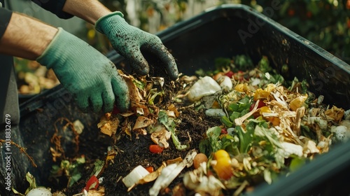 © Irina, Obraz premium Compost rotting microorganisms bin composition background