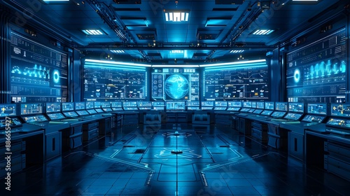 Fototapeta premium Comprehensive Network Center Showcasing Real Time Data Insights and...