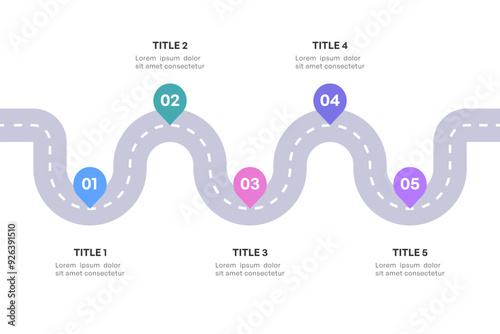 © lukpedclub, Fototapeta premium Comprehensive Roadmap Infographic, Strategic Milestone Path with 5 Key Stages