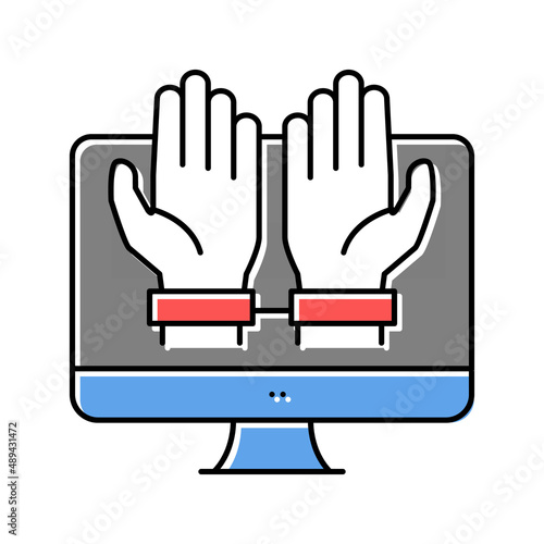 © vectorwin, Obraz premium computer addiction color icon vector illustration