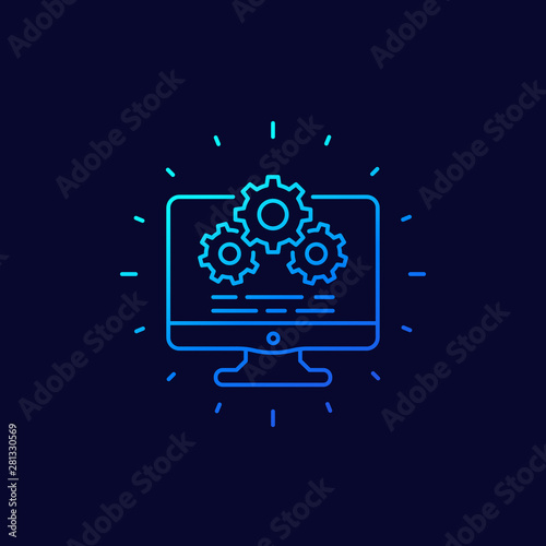 Obraz premium computer and gears icon, settings and configuration linear vector