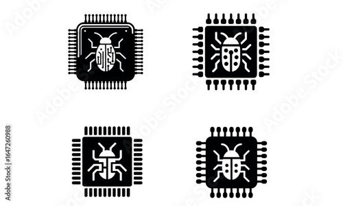 Fototapeta premium Computer bug icon vector illustration with microchip and virus symbol