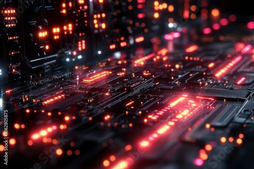 © Sunshine, Obraz premium Computer chip with many red and orange lights