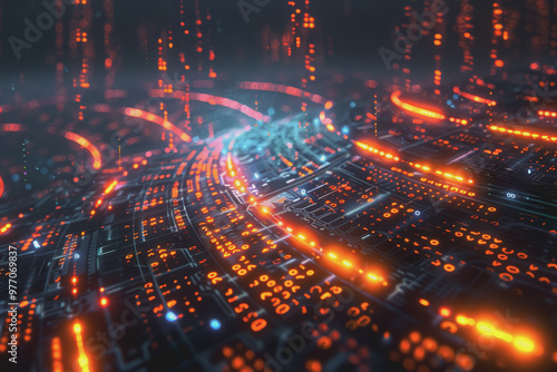 Fototapeta premium Computer concept for development in the digital age in unclear details,...