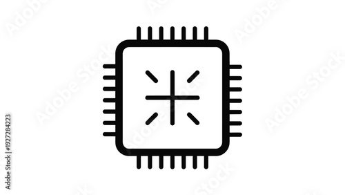 Obraz premium Computer CPU chip processor icon vector in black line art style