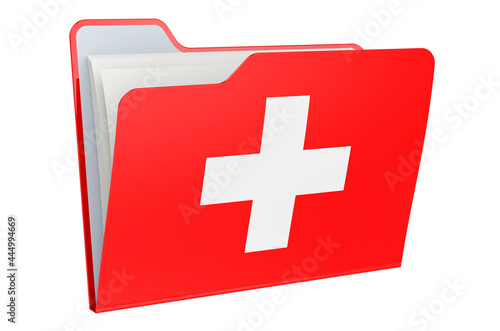 © natatravel, Obraz premium Computer folder icon with Swiss flag. 3D rendering