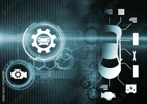 Obraz premium Computer graphic image of car and tools