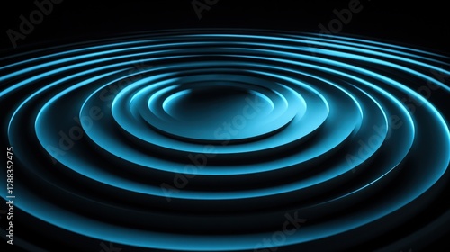 © Ahmed, Obraz premium Computer graphics moving from the center forward bright blue circles on a black background. Technology development concept. A symbol of the multi-layered world and space. concentric circles