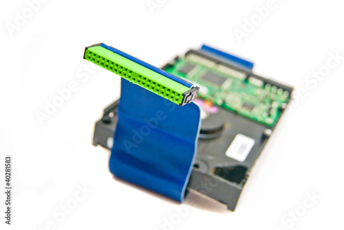 © mskphotolife, Fototapeta premium computer hard drive and blue IDE connectors