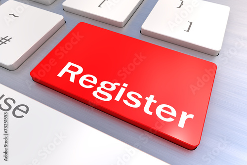 © 3drenderedlogos.com, Fototapeta premium Computer keyboard with a Register Button Concept