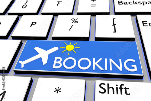 Fototapeta premium Computer keyboard with airplane symbol and lettering