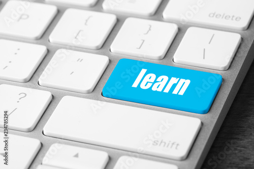 Fototapeta premium Computer keyboard with LEARN button, closeup view