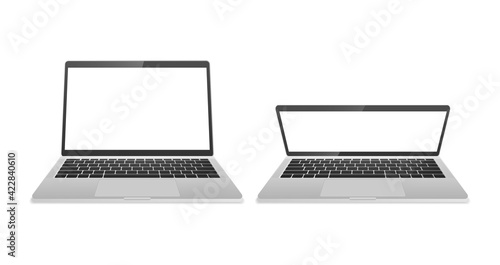 © StarGraphic, Fototapeta premium Computer laptop of silver color front side isolated on white background. Device Mockup. Vector illustration.