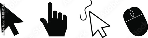 © Sagor, Obraz premium Computer Mouse Cursor and Hand Pointer Icon Set with Clicking Action Symbols for Website Interface Navigation User Experience and Digital Design