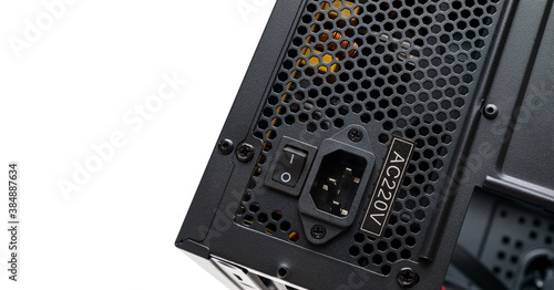 Obraz premium Computer part for system unit assembly, power supply for computer close-up,...