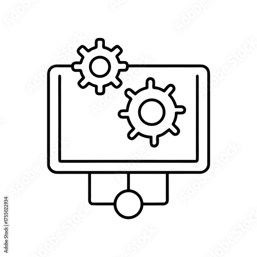 © MrJibon, Obraz premium Computer screen with two gears above it on transparent background
