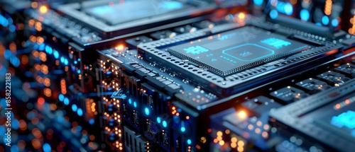 © STOCKYE STUDIO, Obraz premium Computer technology in a server room, highlighting data storage, web infrastructure, and network equipment