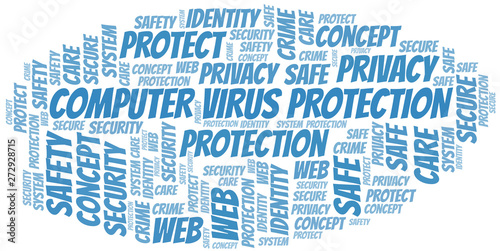 © sharafmaksumov, Obraz premium Computer Virus Protection word cloud. Wordcloud made with text only.