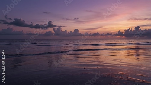 © Halim Karya Art, Fototapeta premium computer wallpaper aesthetic purple ,Soft purple sunset over a calm, serene ocean
