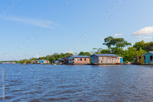 Naklejka premium Comunidade ribeirinha / casas flutuantes próximo a Manaus, Amazonas -...