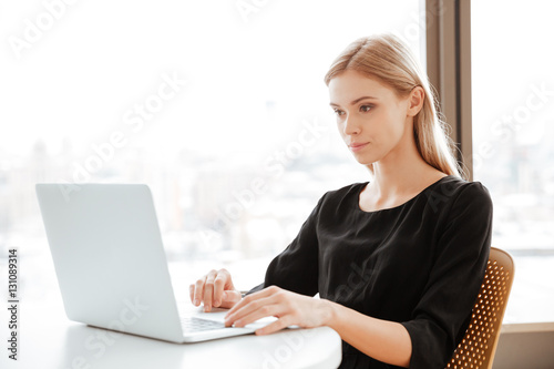 © Drobot Dean, Naklejka premium Concentrated young woman worker using laptop