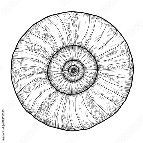 Obraz premium Concentric, black and white illustration with a round, shelled motif