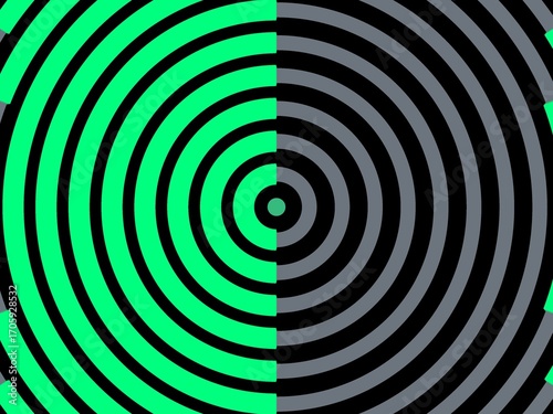 © Pupun, Fototapeta premium Concentric circles background, half green, half grayscale, bold contrast.