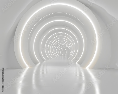 Obraz premium Concentric Circular Corridor with LED Lighting