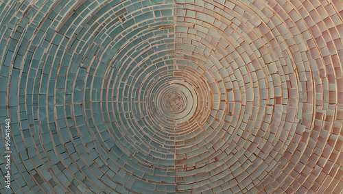 © Joesunt, Fototapeta premium Concentricity: A mesmerizing mosaic of teal and orange hues, drawing the eye towards its vibrant center.