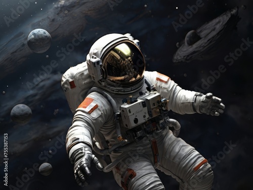 Naklejka premium concept art expressive astronaut floating in outer space HD Wallpapers