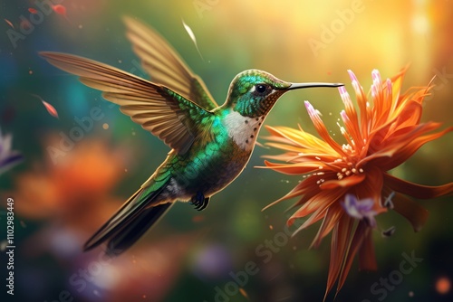 Obraz premium Concept Art of Hummingbird Flying by Floral Wonder