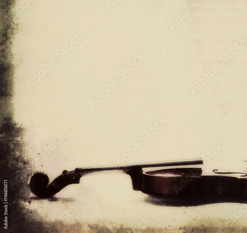 © dule964, Fototapeta premium concept grunge vintage violin with bow background