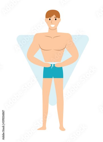 Fototapeta premium Concept Male body types man. The illustration depicts a cartoon-style male character in a flat, vector design. Vector illustration.