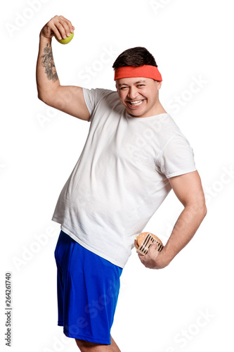 Obraz premium concept man makes the choice between healthy and unhealthy food. the choice...