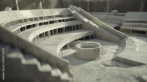 Obraz premium concept of a stadium under construction, with concrete being poured into molds for seating and sections.