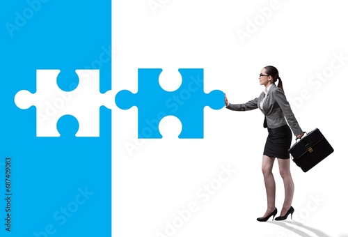 Fototapeta premium Concept of businesswoman with missing jigsaw puzzle piece