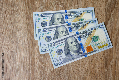 © FOTO SALE, Obraz premium Concept of Dollar Dollars Closeup Concept One hundred dollar bills Lined up Payable taxes are legal.