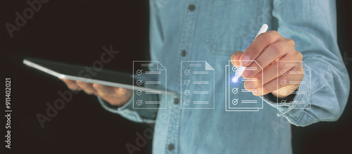Fototapeta premium Concept of electronically checking smart items and documents on a virtual...