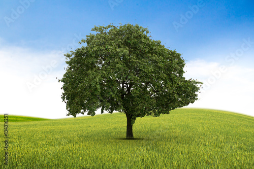© photoraidz, Obraz premium Concept of life. Big alone tree in the field. Tree of life.