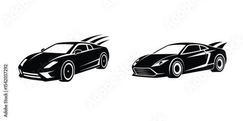 © Design Wave Ai, Naklejka premium Concept Showing a Dynamic Sports Car Accelerating Outward in Front Angle Silhouette on White Background