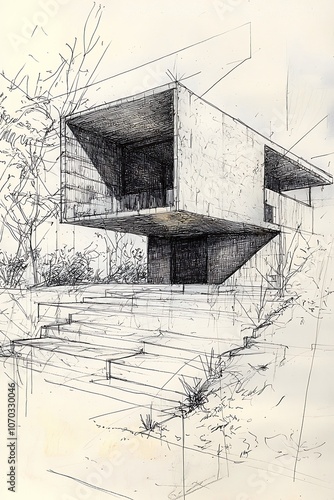 © paulsplading, Obraz premium Concept sketch of a private house. Architecture process in focus.