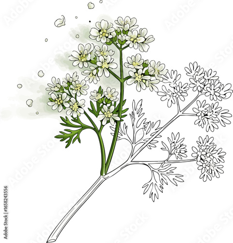© Jinnam, Fototapeta premium Conceptual Art Sketch Style Flowering Cilantro